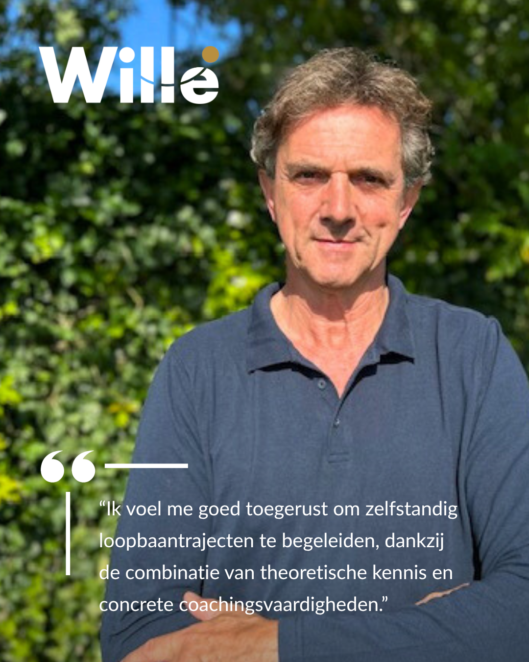 Van jongs af aan heb ik al interesse in mensen en wat hen drijft. Mijn interesse in mensen bracht me bij diverse coachopleidingen, waaronder paardencoaching, systemisch coachen (in de natuur) en trauma-sensitief begeleiden. Ik had al een tijdje het verlangen om van coaching mijn werk te maken. Maar vond het ook spannend om mijn oude werk los te laten. Een burn-out maakte mij (weer) bewust van wat mij werkelijk energie geeft: anderen ondersteunen in hun persoonlijke ontwikkeling en bij hun zoektocht naar werk dat echt bij hen past. En dat heeft uiteindelijk geleid tot de opleiding voor loopbaan- en re-integratiecoach én mijn huidige werk bij Wille!