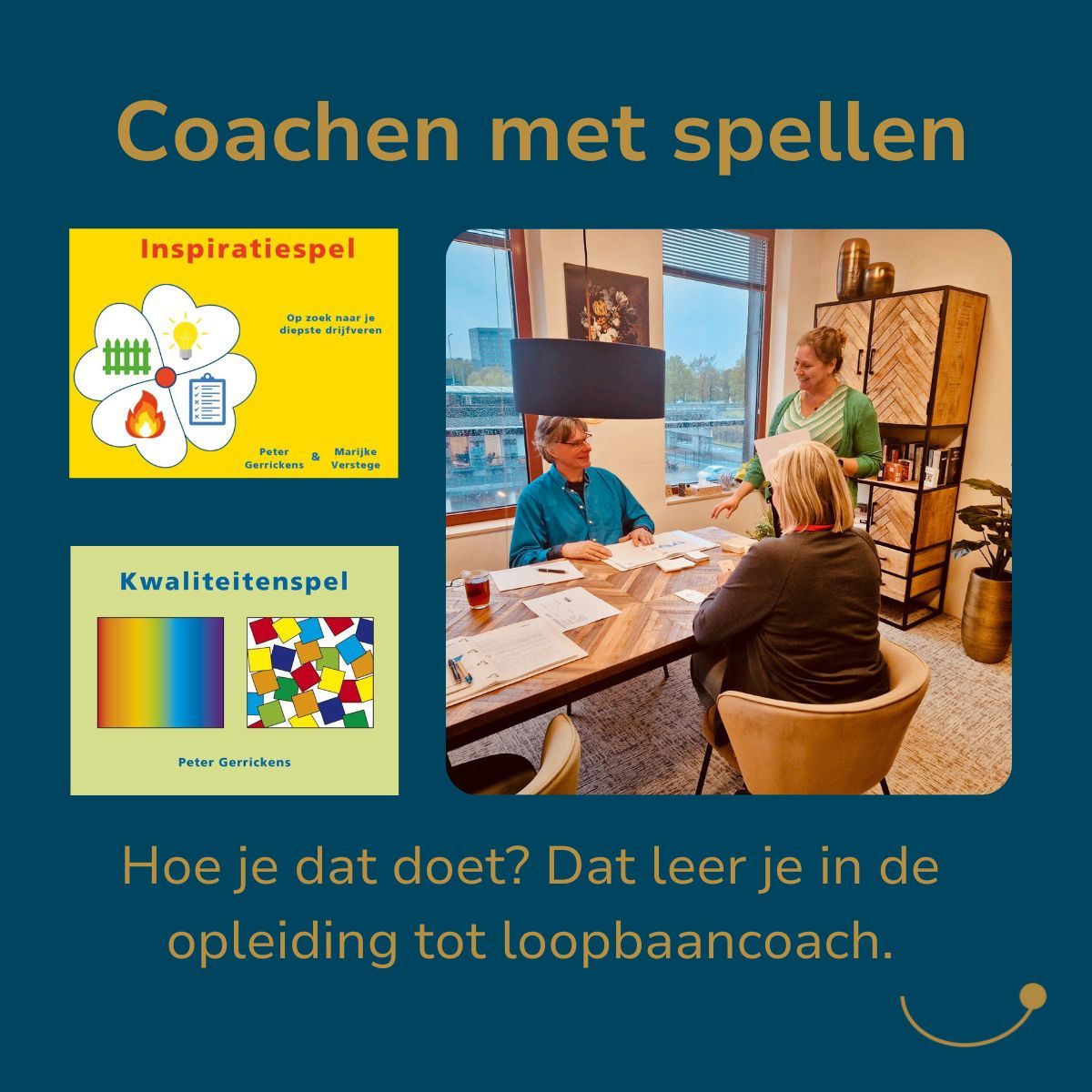 Onze opleiding tot loopbaancoach is weer in volle gang. Afgelopen vrijdag stond de opleidingsdag in het kader van coachen met spellen. Stefanie Bult en Mirjam Schaap leerden de studenten werken met het inspiratiespel en het kwaliteitenspel.