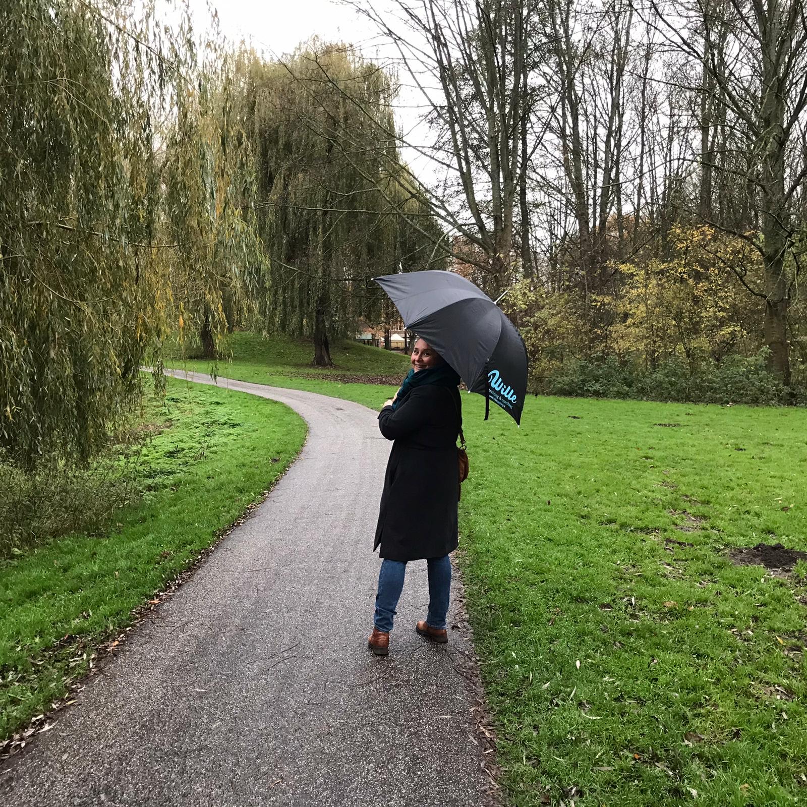 Kijk onze collega Stefanie eens gaan! Gewapend met de Wille paraplu spreekt ze haar klanten in het park en in het bos. Omdat velen (ook wij) het zoomen en telefoneren na zo’n lange tijd toch wel wat beu zijn geworden spreken wij onze klanten tegenwoordig tijdens een wandeling. Buiten zijn geeft energie en nieuwe inzichten. Een fijne manier van interactie en prima te doen op anderhalve meter afstand.
