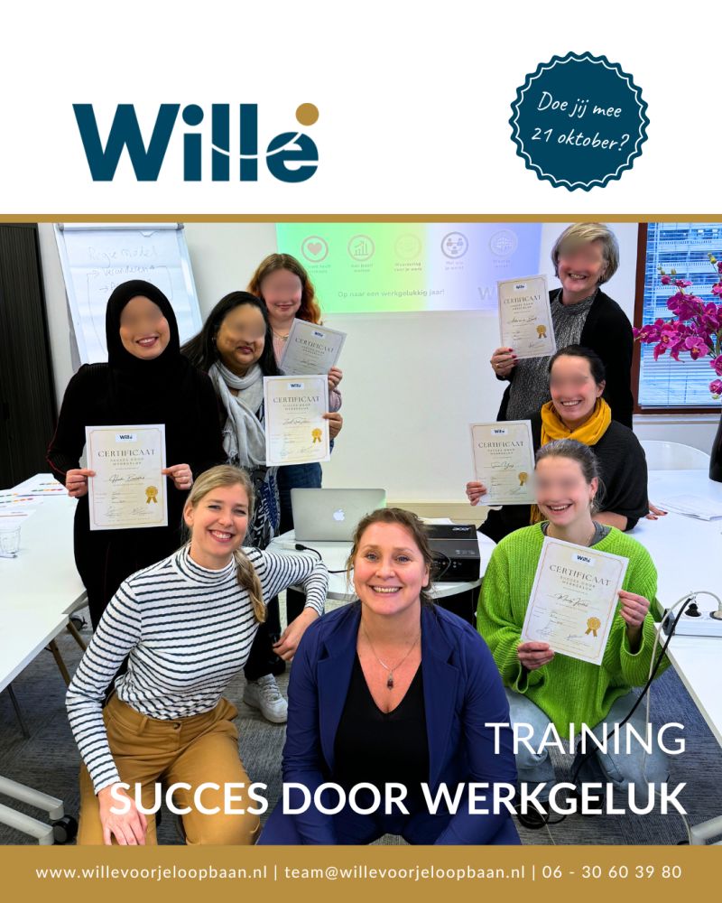 “Wille betekent ‘Plezier’ in het Fries. Ik woon en werk in de Randstad maar ik ben geboren en getogen in Friesland. De Friese naam is dan ook een knipoog naar mijn roots. Mensen die bij ons aan tafel komen zijn het plezier vaak een beetje kwijtgeraakt door bijvoorbeeld ontslag of ziekte. Het kan ook gebeuren dat mensen per toeval in een vakgebied rollen als ze jong zijn.